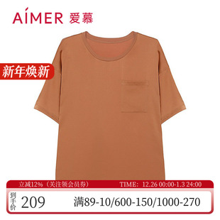 爱慕春夏薄款 上衣AM457322 睡衣莫代尔桑蚕丝亲肤圆领女士家居短袖