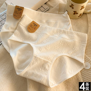 纯色提臀透气纯棉裆三角裤 收腹韩版 头 女士低腰大码 4条纯棉内裤