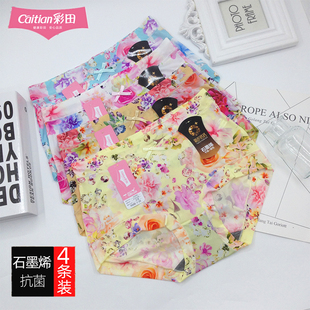 速干印花底裤 彩田女内裤 冰丝30988高腰收腹30987中腰石墨烯裆大码