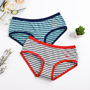 蝶安芬内裤 女士条纹低腰性感平角包臀海军风