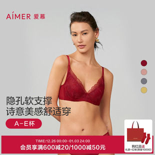 爱慕光羽蕾丝红色花瓣内衣女薄杯隐孔蕾丝大胸显小文胸内裤 套装