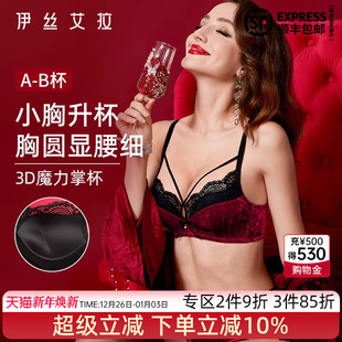 伊丝艾拉红色蕾丝文胸套装 性感大胸显小胸防下垂收副乳聚拢内衣女