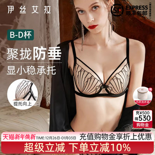 法式 大胸显小 性感蕾丝内衣女小胸聚拢软钢圈超薄兔耳杯文胸套装