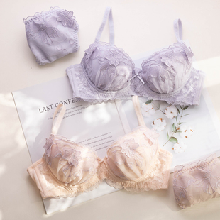 • 蕾丝无钢圈文胸套装 小胸可爱胸罩纯欲法式 薄款 性感美背内衣女夏季