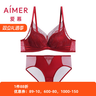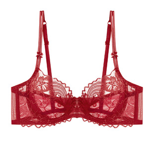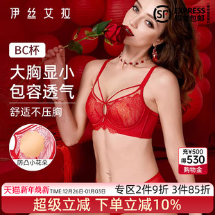 伊丝艾拉红色内衣套装 大胸显小性感结婚新娘蕾丝文胸 本命年女薄款