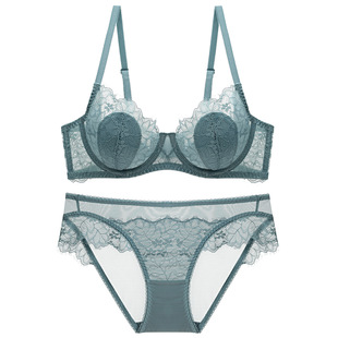 女士蕾丝胸罩性感半杯内衣胸托奶罩三点式 霏慕半托式 镂空文胸套装