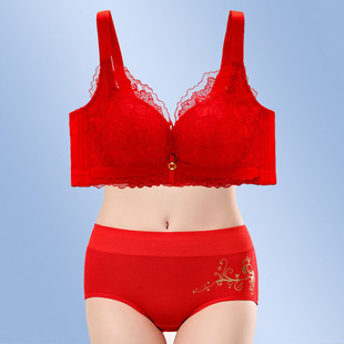 本命年大红色无磁内衣内裤 女小胸聚拢无钢圈结婚新娘性感文胸 套装