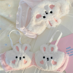 毛绒小兔 小胸聚拢性感甜美纯欲少女可爱无钢圈胸罩内衣文胸套装