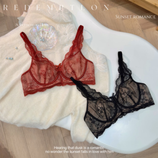 网纱上托小胸聚拢舒适透气文胸 少女蕾丝透明薄款 法式 性感内衣套装