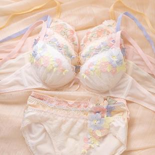 薄杯中鸡心有钢圈圆盘胸双排扣内衣套装 刺绣花朵款 新款 2025年当季