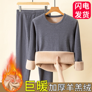 冬 打底棉毛衫 一体羊羔绒保暖内衣套装 女加绒加厚德绒发热秋衣秋裤