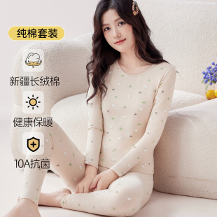 学生内穿抗菌打底棉毛衫 保暖内衣女薄款 冬 女士套装 95%棉秋衣秋裤
