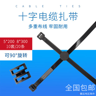 汽车电动车十字电缆水管双条两条合用带固定座尼龙扎带束线带实用