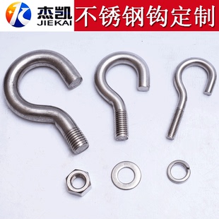 不锈钢问号挂钩螺纹钩子定制弯弯开口挂杆螺丝钩子加长套装 带螺母