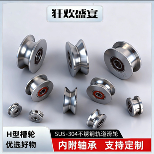 304不锈钢轨道轮定制轴承轮H型槽U型起重V型钢丝定滑轮导轨导向轮