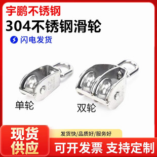 304不锈钢滑轮钢丝绳U型吊环定滑轮单双轮子起重滑轮吊钩省力工具