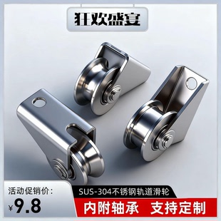 304不锈钢滑轮带轴承u型v型h型槽轮平移门滑轮起重定滑轮吊轨道轮