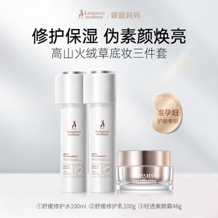 袋鼠妈妈高山火绒草水乳护肤套装 修护精华准孕妇专用补水面霜正品