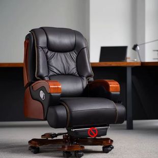 真皮老板椅子商务可躺办公椅实木四脚大班椅家用电脑椅舒适书房椅