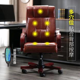 真皮老板椅商务按摩大班椅实木办公椅可躺升降转椅家用椅子电脑椅