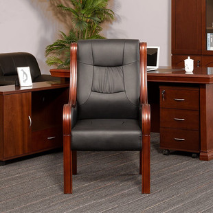 班椅行政办公室 油漆黑色实木框架真皮会议椅威严稳重中式 经典 大款