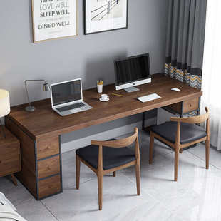 实木台式 电脑桌书桌书柜一体简约现代家用小户型办公桌双人学习桌