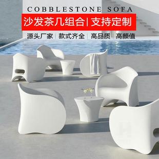 商场休闲玻璃钢鹅卵石坐凳椭圆等候公共椅户外凳茶几组合座椅