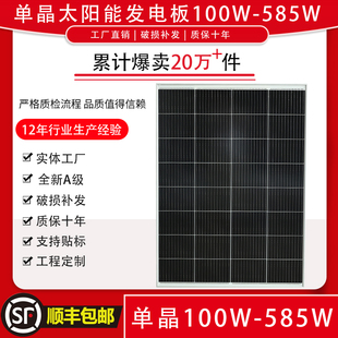单晶硅A级200W12V太阳能发电板300W电池板24伏家用光伏585W充电板