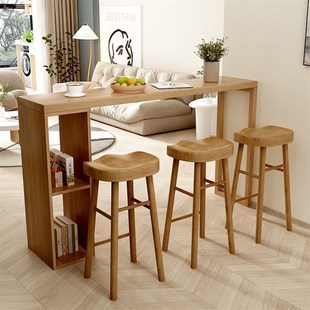 实木吧台桌家用简约现代客餐厅隔断柜阳台吧台靠墙高脚窄桌椅组合