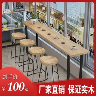 铁艺实木吧台桌椅组合简约现代靠墙窄桌长条桌奶茶店小吧凳高脚桌