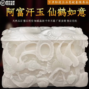 汉白玉天然玉石骨灰盒下葬用品阿富汗玉骨盔盒棺材防潮盒殡丧用品