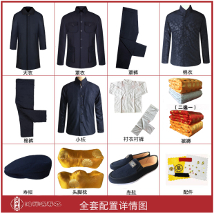 老衣服厂家 中老年人装 中山装 寿衣七件套大衣男全套八件套年轻西装