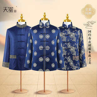 老人冲喜殡葬寿装 鸿祥瑞寿衣男全套全配饰中式 高档龙图腾男现代装