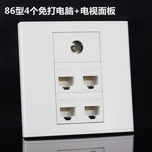 TV有线电视插座墙壁面板 电脑网线面板 86型4个网络 电视组合面板