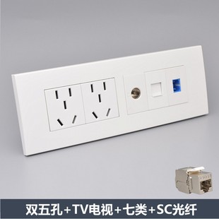 86型双屏蔽CAT7七类网络网口带TV面板有线电视 SC光纤2孔电脑插座