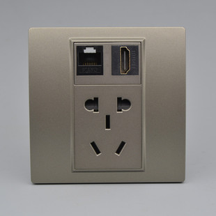 深灰色六类网络HDMI带五孔插座5孔加千兆电脑电视网线高清线面板