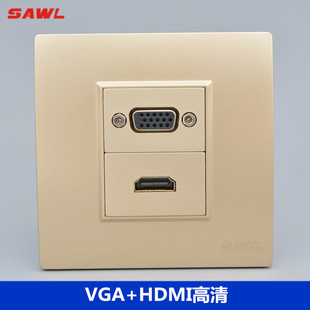 香槟色VGA高清多媒体投影仪墙壁插座网络VGA母头2.0HDMI直插面板