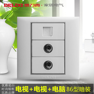 德力西双电视带电脑插座二位有线宽带网线1位网络2位闭路86型面板