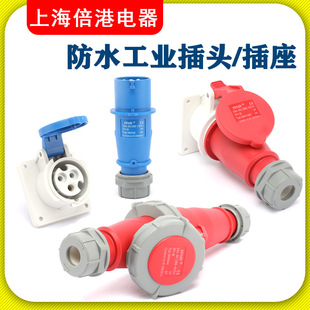 航空插座380v工业插头插座16a3孔工业插座32A5孔直座暗装 防水插座