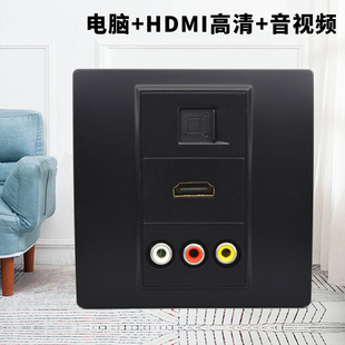 黑色86多媒体免焊接AV莲花音视频插座 高清hdmi面板 电脑网络插座