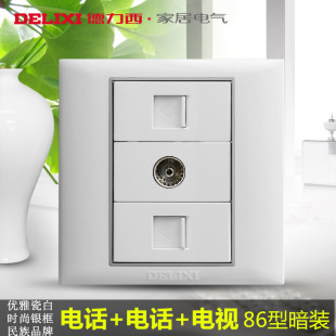 电视组合插座 2电话 德力西86型弱电插座 二位电话一位电视插座
