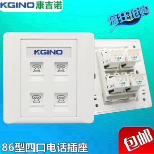 86型4位墙壁电话语音四口模块插座 RJ11电话插四口免打电话线面板