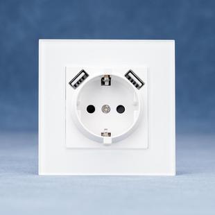 欧标欧规插座86型钢化玻璃面板usb德插双typa a口欧洲标准c
