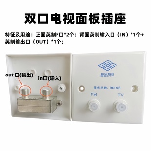 二进一出有线数字电视一分二 背面一进一出二分支英制F头插座面板