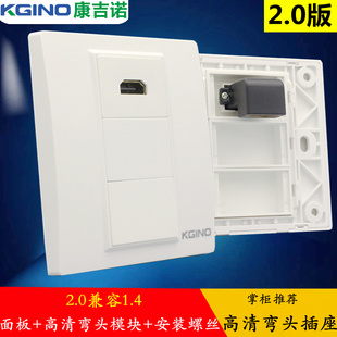 86型雅白2.0HDMI弯头插座高清4K电视投影对接直角L型面板插座电视