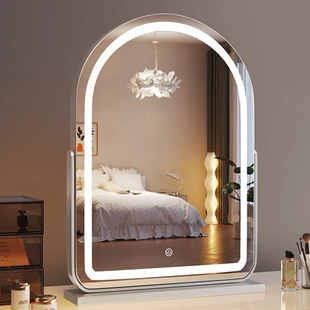 拱形大号化妆镜台式 桌面梳妆镜led带灯ins梳妆台家用智能镜子充电