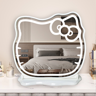 hellokitty化妆镜子led智能带灯可爱公主风美妆镜卧室桌面梳妆镜