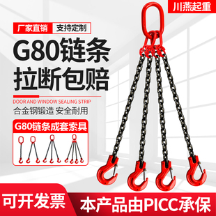 起重链条吊索具双勾四钩吊具吊环行车吊车吊钩挂钩G80级猛钢链条