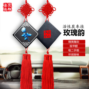 金乌炭雕玫瑰韵车吊饰 活性炭除异味 挂饰平安车内挂饰创意后照镜