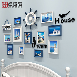 地中海照片墙装 饰相框挂墙创意男孩儿童房宝宝卧室相片框组合相册